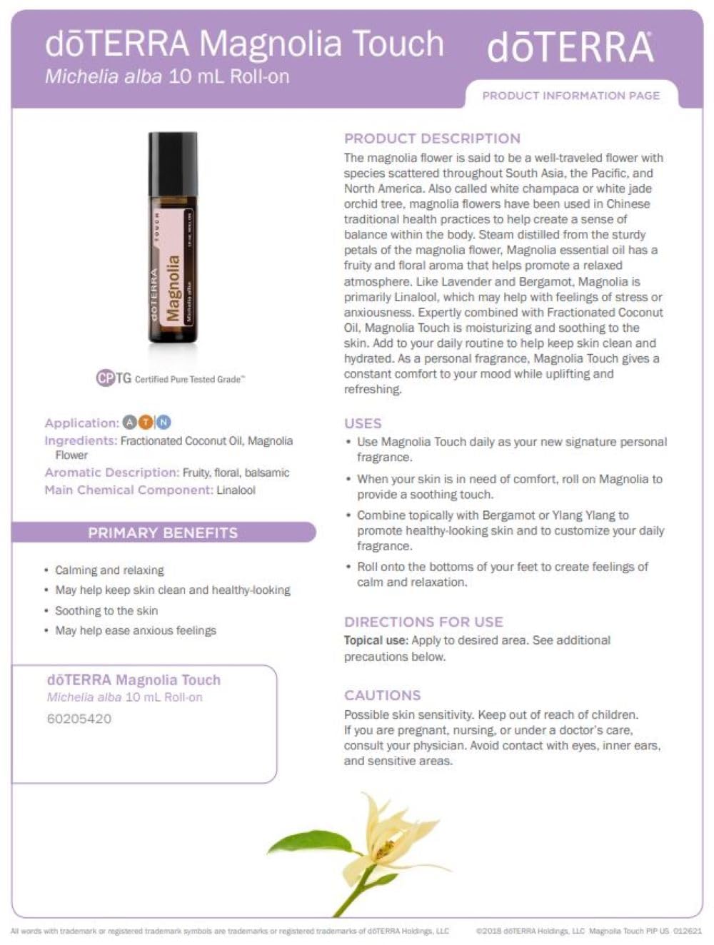 - doTERRA Magnolia are un parfum natural minunat, care induce sentimente de calm și relaxare.